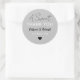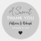 Un doux stickers de remerciement pour votre mariage favorise personnalisée avec les noms de mariée et de mariée et la date mariage.