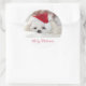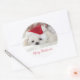 Sticker Rond Un mignon chien blanc dans un Casquette de Noël ro