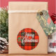 Joyeux Noël Salutation en blanc fantaisie écriture sur un plaid rouge et noir frappant. Simple et élégant. Cartes personnalisables