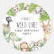 Découvrez le côté sauvage de la planification de la fête avec notre autocollant unique 'Wild One!' 1er anniversaire Enfants Australiens thème animal fête d'anniversaire autocollant. Ce design contemporain associe des aquarelles fantaisistes et une typographie branchée.