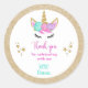 Sticker Rond Unicorn magique Rainbow Merci Party