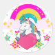 Sticker Rond Unicorne arc-en-ciel avec étoiles