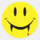 Autocollant Vampire Face. Prenez votre visage jaune vif habituel et ajoutez des crocs de vampire avec une goutte de sang de l'un d'eux. Ce sticker vampire est certainement une autre façon de prendre le visage standard.