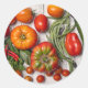 Top view of an organically homegrown vegetable and herb harvest, y compris les tomatoes, cucumbers, beans, hot peppers, basil, sage et origan