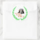 Casque militaire romain ancien en cuivre métallique. Texte Veni, Vidi, Vici. Dessin d'une couronne de laurier vert autour. format carré, cadeaux et souvenirs. sticker rond
