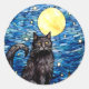 Sticker Rond Verre tendu Chat noir Starry nuit