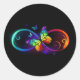 Sticker Rond Vibrant infinity with rainbow butterfly on black