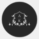 Elégante végétation botanique ornée de crête, monogramme mariage, autocollant noir.