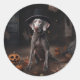 Sticker Rond Weimaraner Citrouilles Halloween effrayant
