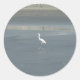 Sticker Rond White Bird on Grey Sand Beach Art Imprimer