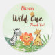 Wild One, autocollants Safari First Birthday.Ce design mignon comprend cinq animaux de safari aquarelle et des feuilles de style jungle. ajoutez votre texte personnalisé pour créer votre propre plaque spéciale de fête. Pour obtenir plus de coordination des approvisionnements d'une partie sauvage, visitez MetroEvents sur Zazzle. Pour les conceptions personnalisées, veuillez contacter Metro-Event.com.
