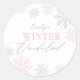 Sticker Rond Winter Onederland Silver Pink Parties scintillant