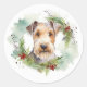 Sticker Rond Wirefox Terrier Festive de Noël Wreath Pup
