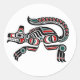 Sticker Rond Wolf Turquoise rouge et esprit haïda noir