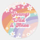 Sticker Rond Young Wild Three Retro Rainbow 3e anniversaire