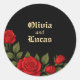Ajoutez une touche de finition spectaculaire à votre papeterie mariage ou faveurs avec cet autocollant Mariage gothique Rose classique rond. Doté de roses rouges profondes contre un arrière - plan noir audacieux et d’un texte élégant, il est parfait pour sceller des enveloppes, décorer des sacs de faveur ou ajouter un détail cohésif à votre thème mariage gothique. Élégant, polyvalent et facile à utiliser, il apporte une touche de romantisme et de mystère à chaque pièce.