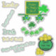 Bonne Saint Paddy's Day. Fun mignon Leprechaun composé de shamrocks verts pour les yeux, le nez et la bouche. Il est décoré d'un casquette en or vert festif avec une décoration shamrock. Pot d'or a des pièces d'or et le libellé, Or pour le gardien'. Des paroles irlandaises dont Leprechaun, pot d'or à collants découpés au laser. Conçu pour les autocollants en vinyle extra grand pour se démarquer et découper individuellement. Design original © TamiraZDesigns. Visitez mon magasin pour voir d'autres articles originaux : www.zazzle.com/tamirazdesigns