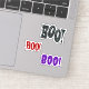 * "BOO!" text design with creepy white jack-o-lanterns within and two additional designs that you can change the color of.