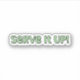 Un design de typographie amusant avec les mots "Serve it Up!" dans une police verte rétro. Ce design est une excellente idée cadeau pour les joueurs de pickleball !