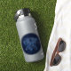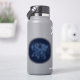 Sticker avec le symbole de Gemini en bleu argenté doux, recouvert d'étoiles de la constellation, contre un arrière - plan étoilé du bleu profond de minuit au noir