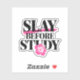 Apportez le cours et l'humour à vos journées scolaires avec ce design audacieux "Slay Before Study". Doté d'une mise en page typographique entièrement casquette et d'un soulignement rose frappant et d'un accent ludique sur les fleurs d'hibiscus, il est parfait pour les étudiants qui aiment mélanger style et attitude. Un choix amusant et énergique pour les ados, les étudiants et toute personne prête à faire une déclaration ce semestre.
