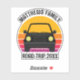 Cool custom road trip sticker for spring break or summer vacation with your family or friends. Personalize with your last name or group above the retro sunset and car silhouette. Perfect for a trip to a cottage or across the country. Drive off into the sunset.