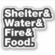 Sticker Survie (Abri & Eau & Feu & Nourriture). Autocollan