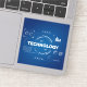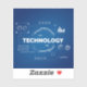 Un autocollant art numérique avec un arrière - plan bleu et des graphiques blancs. Le mot "TECHNOLOGIE" apparaît en évidence au centre, entouré d'une ligne circulaire pointillée. Au-dessus et au-dessous du mot se trouvent les codes binaires "01101" et "10101" respectivement. L'autocollant comporte divers dessins de lignes blanches, dont un carré avec deux cercles à l'intérieur, un motif de grille, un graphique à barres, deux cercles concentriques et un cube. Les numéros "01" à "04" sont rangés en haut, et "05" à "08" en bas.