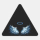 Sticker Triangulaire Blue Glowing Angel Wings on black background