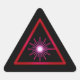 Autocollant triangulaire noir avec un symbole d'avertissement laser rouge profond.