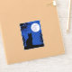 Sticker dans la silhouette d'un chat, regardant une pleine lune dans un ciel étoilé bleu profond