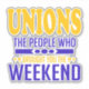 Sticker qui affiche fièrement le message "Unions : Les gens qui vous ont apporté le Week-end." Cette déclaration puissante est un signe de la main d'oeuvre acharnée des hommes et des femmes qui se sont battus sans relâche pour les droits des travailleurs et des pratiques professionnelles équitables.