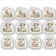 Une feuille entière de vaches brunes de Pâques colorées pour tous vos besoins de bonne odeur de Pâques. Vaches brunes colorées dans un ensemble de trois scènes différentes avec des allures de Pâques bienvenues. Chaque petite feuille comprend 12 autocollants de Pâques de vache dans trois styles différents