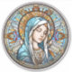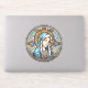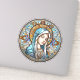 Magnifique autocollant rond religieux pour votre voiture ou VUS ! Le design présente un portrait circulaire généré par l'IA de la Vierge en vitrail.