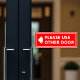 Vous cherchez un moyen de diriger poliment la circulation à pied dans votre entreprise? Ne cherchez pas plus loin que ce panneau rouge "Please Use Other Door" avec un jeu de sticker vinyle flèche! Ces autocollants polyvalents peuvent être placés sur n'importe quelle porte ou fenêtre et sont sûrs de faire passer votre message sans aucune confusion. Le texte blanc vif et la flèche sont faciles à voir, même à distance. Les messages sur ce jeu d'autocollants peuvent être customisés.