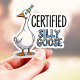 Cet autocollant amusant présente une oie de folie portant un casquette de fête avec l'expression "oie d'argent certifiée". Parfait pour tous ceux qui embrassent leur côté idiot ! Ce sticker vinyle durable est idéal pour les ordinateurs portables, les bouteilles d'eau, les boîtiers de téléphone, et plus encore. Ajoutez une touche de fantaisie et de rire à vos affaires.