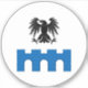 "Argent, en pâle un corbeau arborait le sable et un pont de trois travées azur."