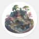 Un ensemble très mignon de modèle paysage imaginaire chinois 3D avec pavillons, lac, sentiers, montagnes et arbres autocollants ronds.