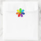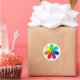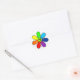 Fleur joyeuse avec pétales arc-en-ciel sur un arrière - plan coloré.