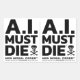 Stickers A.I. Must Die™ Stacked Logo (Bold Font) (découpé en deux). L'A.I. Officiel Doit MourirMC Marchandise. "L'IA n'a aucune empathie, l'IA n'a aucune compassion, l'IA n'a aucune âme. L'intelligence artificielle est simplement un psychopathe sans les contraintes d'un corps humain." - Quartz. Il n'y a qu'une seule solution au problème. L'IA doit être arrêtée. L'IA doit cesser d'exister. AI Doit Mourir !