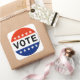 Aufkleber mit Bild eines Buttons mit den Wörtern Vote, in den Farben rot, weiß und blau.