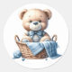 Ours en peluche dans un panier Stickers. Il s’agit d’un autocollant pour garçon, Simple, Joli Stickers pour de nombreuses occasions. Anniversaire, fête du bébé, félicitations,