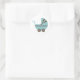 Belle buggy bleue et brune, qui correspondent à "Stripes & Buggy Baby shower Invitation".