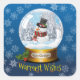 Ce Globe de neige avec un Sticker de l'homme de neige montre les mots "Voeux les plus chauds" en jaune et orange contre une scène de neige hivernale scintillante et un arrière - plan bleu. Idéal pour ajouter un peu de farniente et de plaisir à vos projets d'emballage et d'artisanat de vacances.