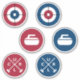 stickers de vinyle avec des roches de curling, balais et maisons en rouge et bleu. Parfait pour les curling et les curling.