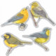 Un assortiment de parulines (en haut à gauche : Paruline protonotaire; en haut à droite : Paruline des Prairies; en bas à gauche : Paruline à capuchon; en bas à droite : Paruline du Canada).