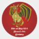 Sticker rond classique avec illustration d'un dragon blindé orange avec des ailes immenses, dragon ailé en armure dorée, design imaginaire pour les enfants avec texte modèle