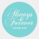 Stickers de Merci toujours et jamais Mariage moderne et élégant avec une belle conception de texte de typographie manuscrite en blanc. Ces autocollants simples et élégants donnent le ton à un mariage élégant et romantique et sont faciles à customiser avec vos détails de mariage. Cliquez sur "Customiser" pour trouver d'autres options de personnalisation. La couleur Arrière - plan peut être changée en n'importe quelle couleur.