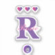 Stickers en vinyle clair de petite taille Monogramme Nom Coeurs JK 2022