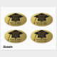 Ajoutez facilement le nom du diplômé, le nom de l'école et l'année de la graduation à ces ovale populaire, graduation personnalisée de beaux autocollants, enveloppes scellées, et faveurs du parti. L'arrière - plan doré, riche et classe, avec le bonnet de graduation noir contrasté avec le design graphique de goût or ajoute à la beauté et à la richesse de ces autocollants uniques. Parfait pour toute année de diplôme pour les enfants, les ados, les hommes et les femmes diplômés de tout âge.
